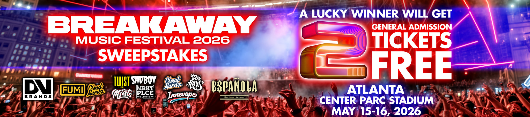 5. Prizes: Grand Prize Award (maximum 1 prize award): One (1) eligible entrant designated as the prize winner shall be awarded the following prize award - Two (2) General Admission two day tickets to Dallas Breakaway 2026 event - valued at $628.00 USD total