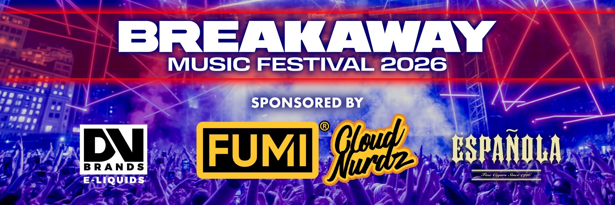 DV Brands Eliquids + Fumi x Cloud Nurdz + Española Cigars are proud to sponsor the Breakaway 2026 events.
