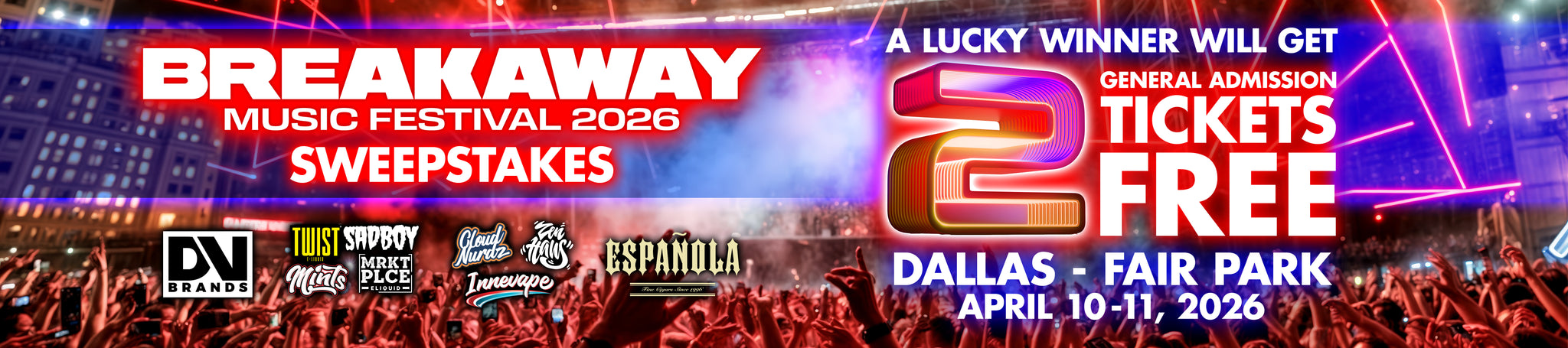 5. Prizes: Grand Prize Award (maximum 1 prize award): One (1) eligible entrant designated as the prize winner shall be awarded the following prize award - Two (2) General Admission two day tickets to Dallas Breakaway 2026 event - valued at $628.00 USD total